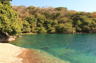 In a lagoon with amazingly blue-green water I marooned my kayak to the rocks and went out for snorkeling. I just had to sit on a rock, with the top of my head and the snorkel out of the water to see hundreds of colorful fishes swimming with me. They actually seemed to be following me. As I didn't know if there were crocodiles or hippos nearby, I didn't stay in too long. On the big slab of almost flat rock next to the lagoon, there was a bird which I approached without seeing it until I was only about three or 4 meters away. It just went on doing whatever it was doing (I don't know what that was really, probably fishing).